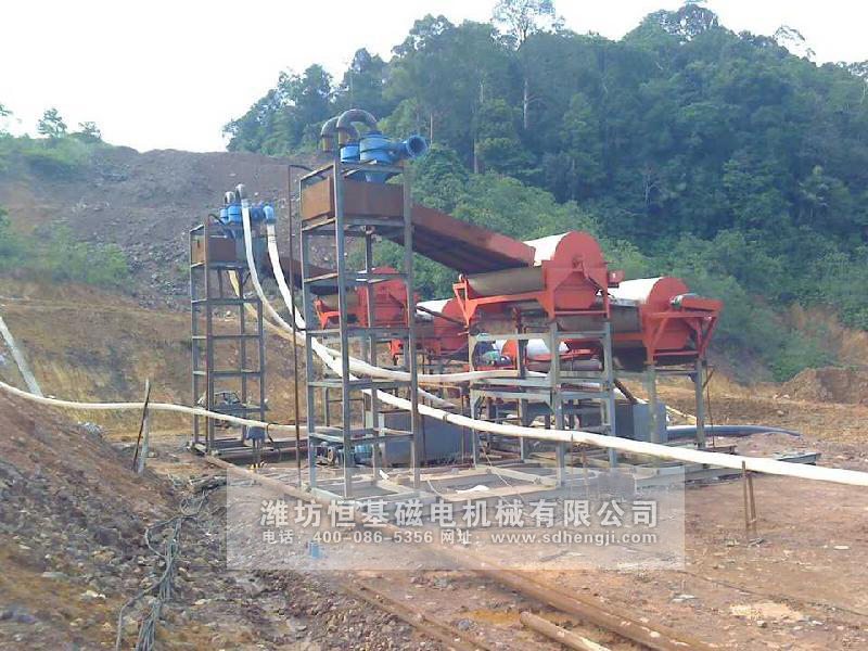 我公司根据10多年的生产经验结合设备现场使用情况对设备进行不断改进,专对铁磁矿干法生产线研发的磁选机结构先进。采用密封式磁系包裹,物料不裹团,无堵塞现象,而且结构简单新颖,主要是防尘效果极佳,对周围环境不会造成太大的污染,接近零粉尘,而且设备处理能力大,单台粗选机的处理原矿量可达80吨以上,也可多台设备并联使用,成倍提高产量。