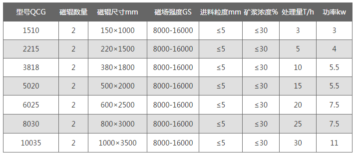QCG强磁辊式91视频在线观看免费大全原理为物料经料仓通过导料盘进入磁场区,磁性矿物被吸附在磁辊表面旋转到达精矿区,毛刷将吸附在磁辊表面上的磁性矿刷脱,在高压水的喷射下落到精矿斗里,部分未被吸附的磁性矿粒、非磁性矿粒和磁性较弱的矿粒进入到下一步再选,实现10辊组合,可对物料进行多达10次的分选,特别是对强磁性、中磁性、弱磁性共存矿物有显著的分选效果。