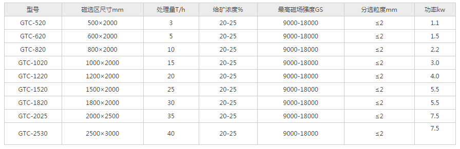 GTC型平板式91视频在线观看免费大全主要适用于粒度5mm以下的弱磁性矿物的磁选及非金属矿物的除铁,如:云母粉、石英砂、钾长石、霞石、萤石、硅线石、锂辉石、高岭土、锰矿、弱磁铁矿、磁黄铁矿、焙烧矿、钛铁矿、赤铁矿、褐铁矿、菱铁矿、钛铁矿、铬铁矿、黑钨矿、钽铌矿、赤泥等。也可用于煤、非金属矿、建材等物料的除铁作业。
