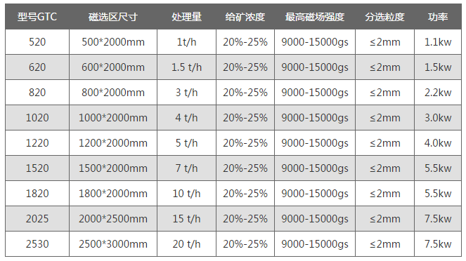 GTC平板式91视频在线观看免费大全主要适用于粒度5mm以下的弱磁性矿物的矿选及非金属矿物的除铁,如:云母粉、石英砂、钾长石、霞石、萤石、硅线石、锂辉石、高岭土、锰矿、弱磁铁矿、磁黄铁矿、焙烧矿、钛铁矿、赤铁矿、褐铁矿、菱铁矿、钛铁矿、铬铁矿、黑钨矿、钽铌矿、赤泥等。也可用于煤、非金属矿、建材等物料的除铁作业。